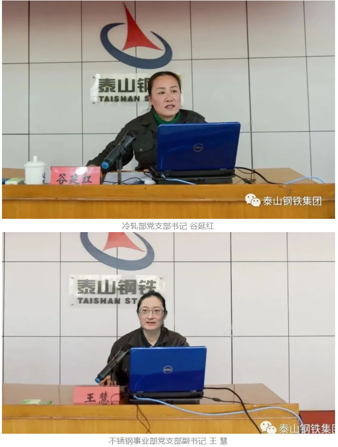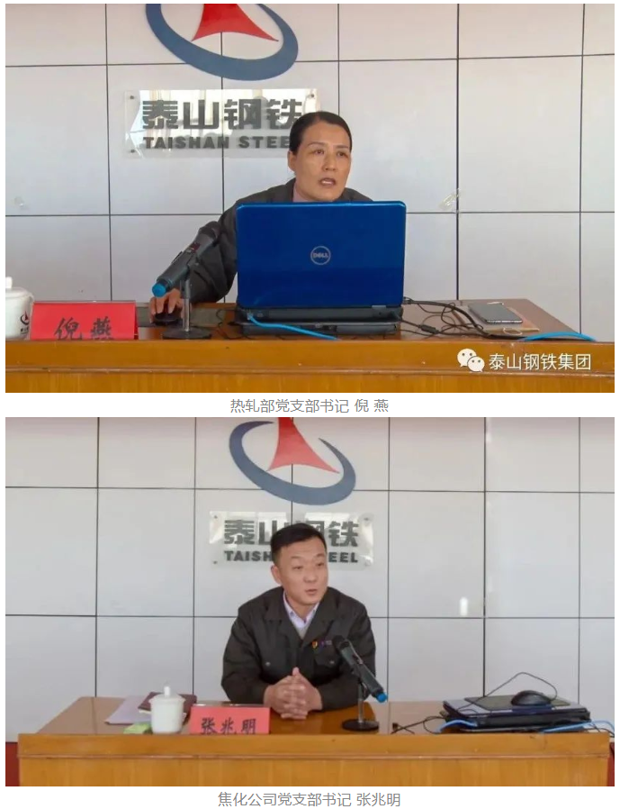 (者代表英语:炼铁部党总支炼铁支部于义款、带钢部党组织张辉、冷扎部党组织李宁、不锈钢304参公部党组织尚伟平、行政机关党总支第3党组织陈静、保护部党组织胡长伟)