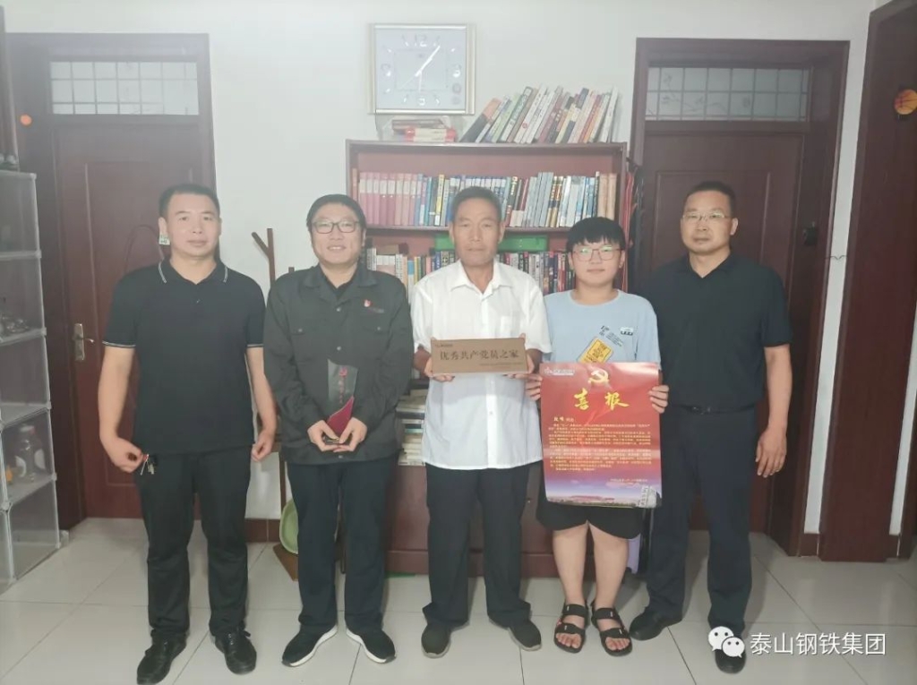 为进一步加强党建工作,切实树立和提升党员的荣誉感和自豪感。近日,泰山钢铁集团各党支部带着党委王书记的亲切嘱托,为七一期间评选出的优秀共产党员、“学创”标兵党员送去了门牌、喜报,让党员们切实感受到了组织的关怀,增强了党员的归属感,强化了组织的凝聚力,激发了党建的内生动力。