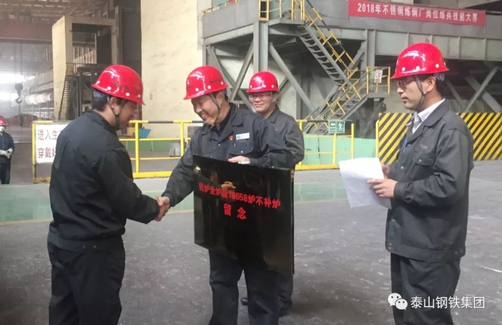 5月7日,泰山钢铁不锈钢炼钢厂在脱磷转炉主控室进行了脱磷转炉“全炉役18658炉不补炉”授牌仪式。