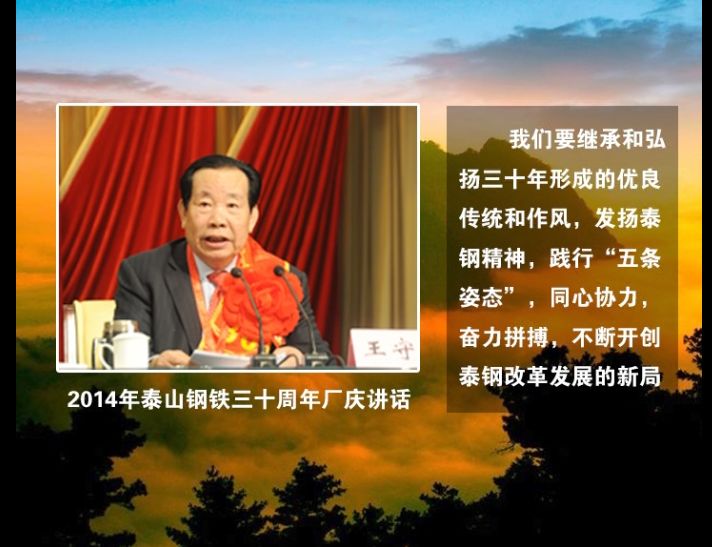 作品讲述了泰山钢铁集团缔造者王守东同志带领泰钢人三十余年的发展历程。著名军旅作家、中国作家协会副主席李存葆赞叹:该电影叙述的是了王守东和泰钢人三十五年超出想象动魄的创造者史,卓尔斐然的开发史,威武不屈的改制史,坚韧不拔不拔的奋发努力史,从未有过尤其感奋!