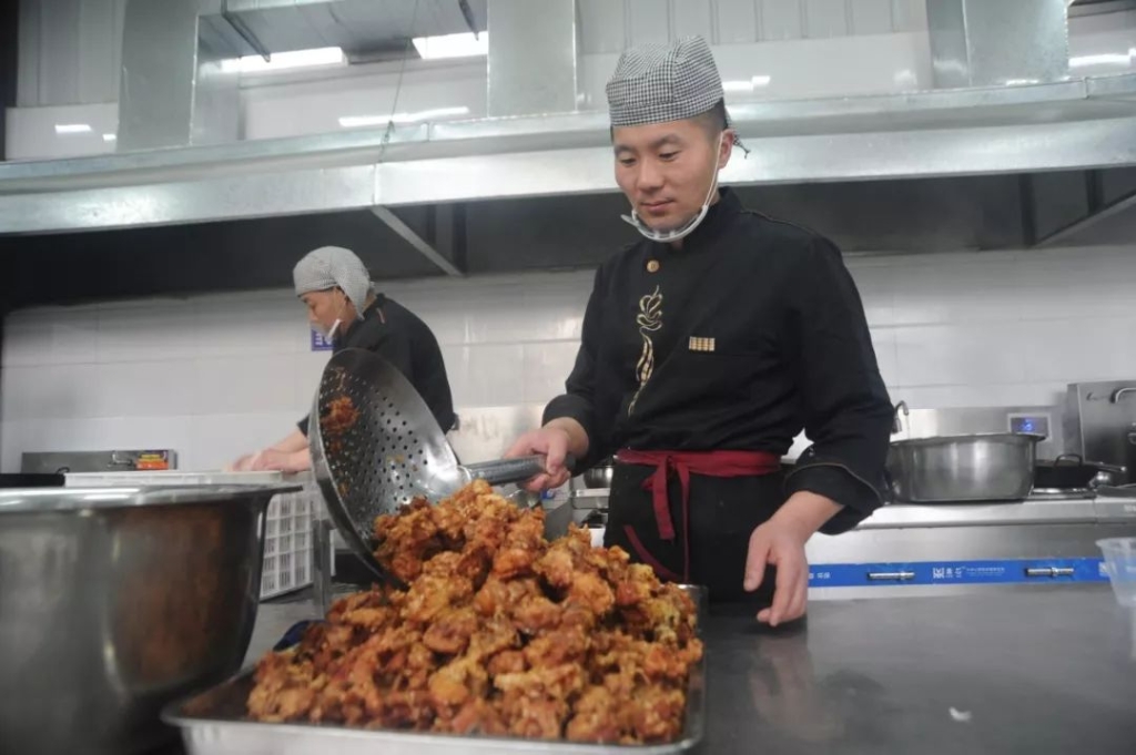 学校食堂里,美味的食堂菜已的准备就好……