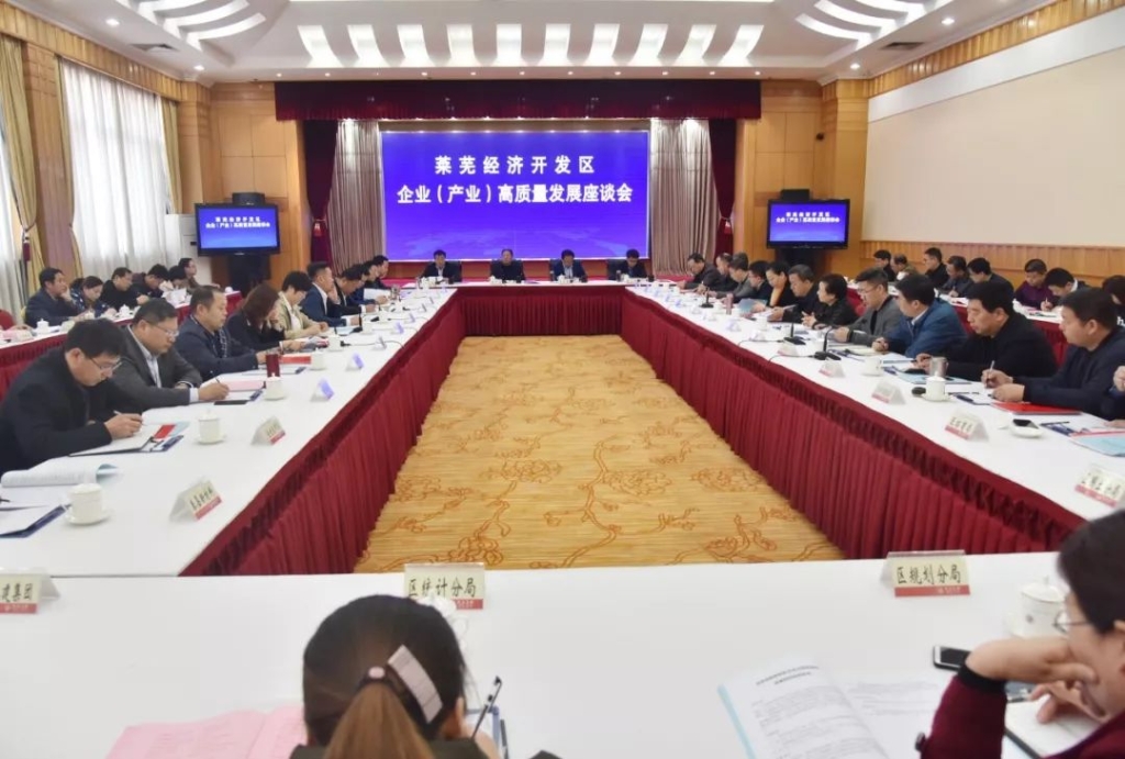 3月22日,莱芜经济开发区企业高质量发展座谈会在莱芜宾馆召开。莱芜经济开发区党工委书记张子信主持会议并宣读表彰决定,莱芜经济开发区党工委主任李长春介绍了当前经济形势,泰山钢铁集团董事长、党委书记、总裁王永胜出席会议并发表讲话。