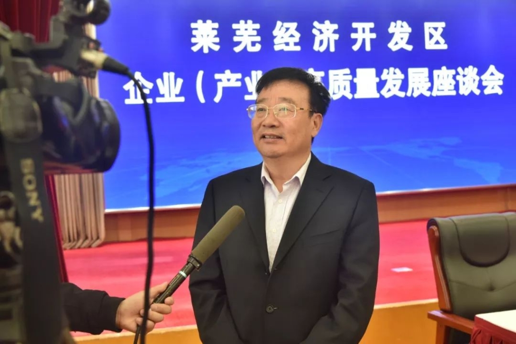 座谈会结束后,王董事长就泰山钢铁集团高质量发展的方向和措施接受了济南电视台的采访。