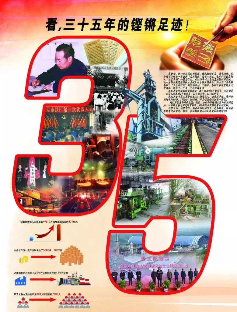 35近些年,让我们用铸就再谱对党的忠诚度高:建厂阶段的7个党总支、35名老共产党员,大家已成长到8个党总支、23个支部、1310名老共产党员……