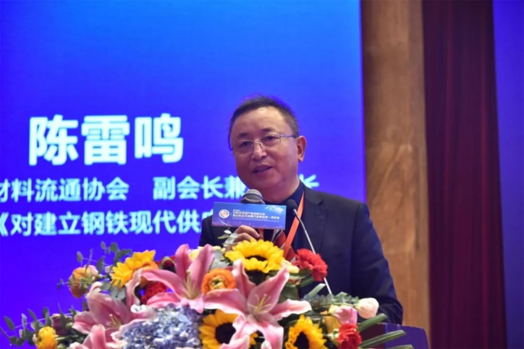 中国金属材料流通协会副会长兼秘书长陈雷鸣作名为《对建立钢铁现代供应链的思考》的演讲。
