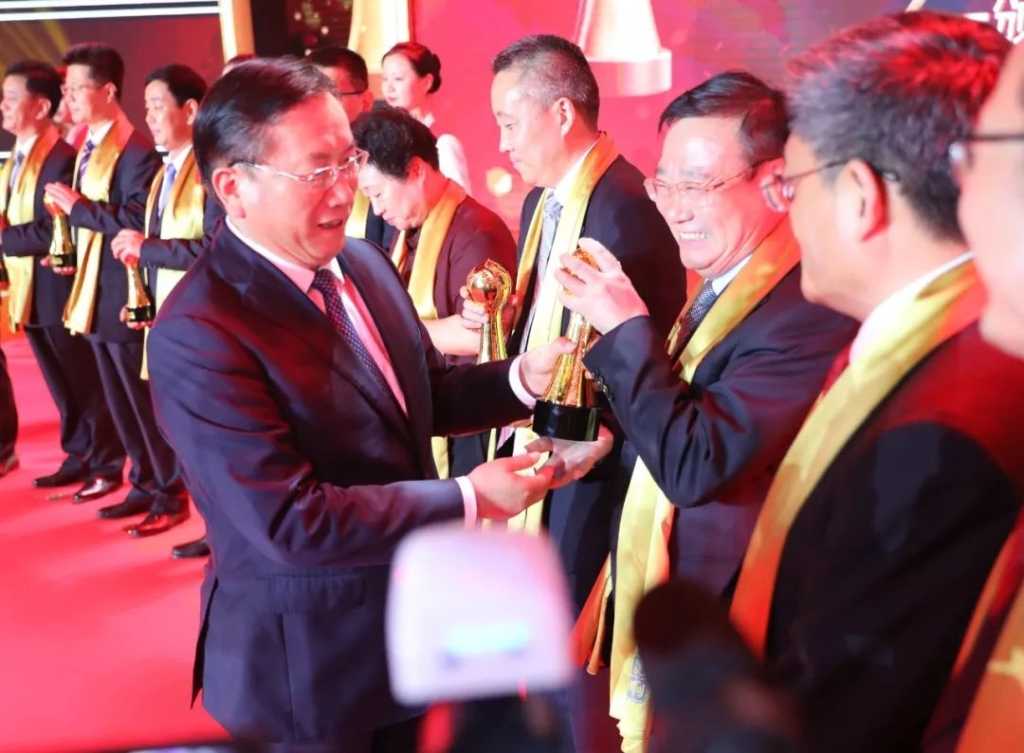 (图为省纪委常委、市委党支书王忠林为王董事会长授予荣誉奖)