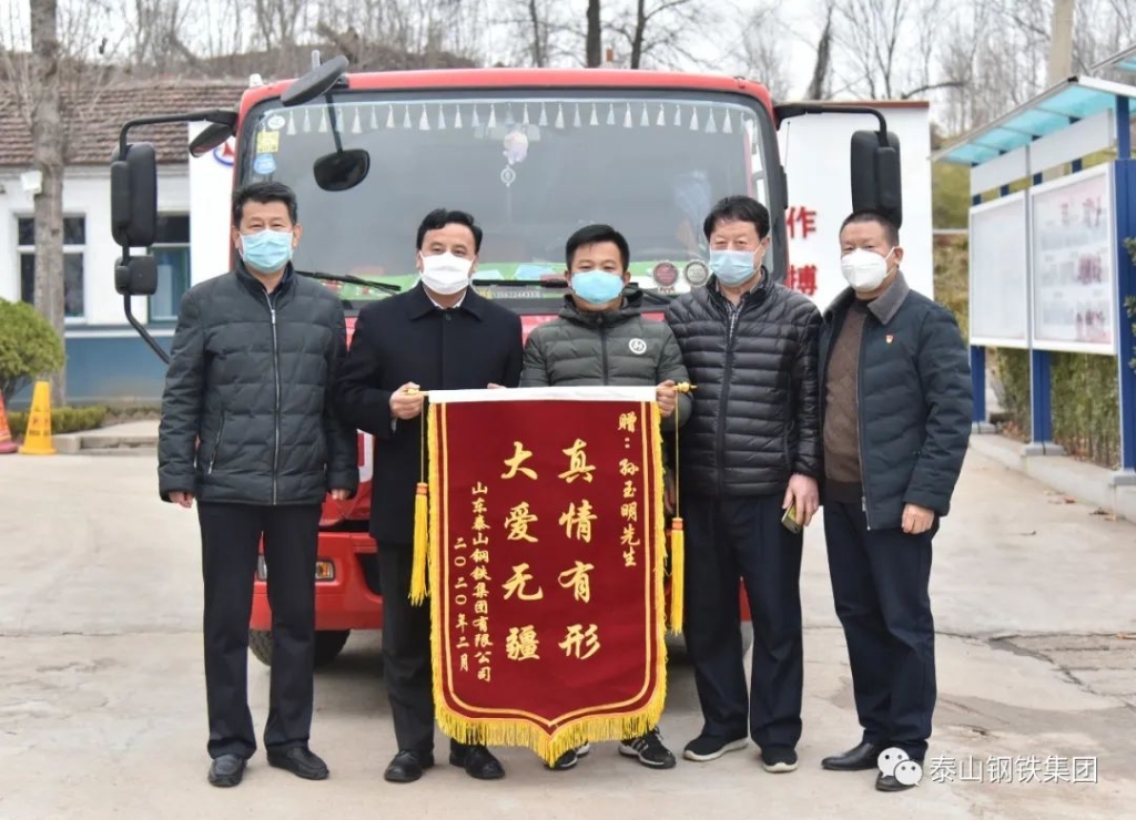 泰山钢铁特意制作了一面锦旗