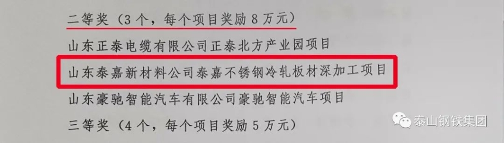 集团获得了“2019年度实业强区先进单位”、“优秀贡献企业”、“优秀科技创新企业”等荣誉,泰嘉不锈钢冷轧板材深加工项目获得“十大优秀项目”二等奖。