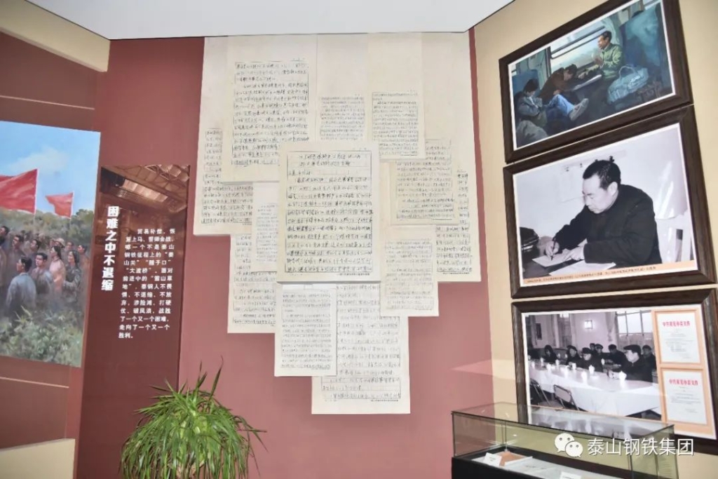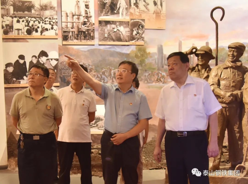 揭牌仪式后,王董事长陪同董海燕一行参观了泰钢精神主题展览馆,介绍了泰山钢铁艰苦奋斗的发展历程。