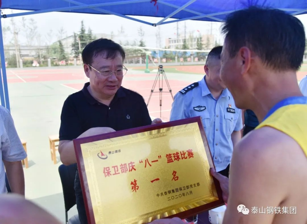 王执行李总等管理者认真观看了比赛,并为庆“八一”篮球比赛的获奖队伍颁发了奖牌。