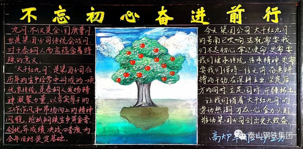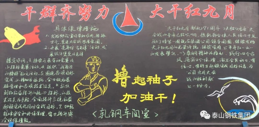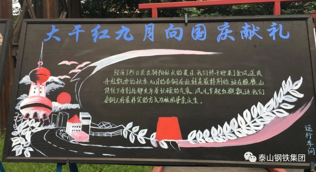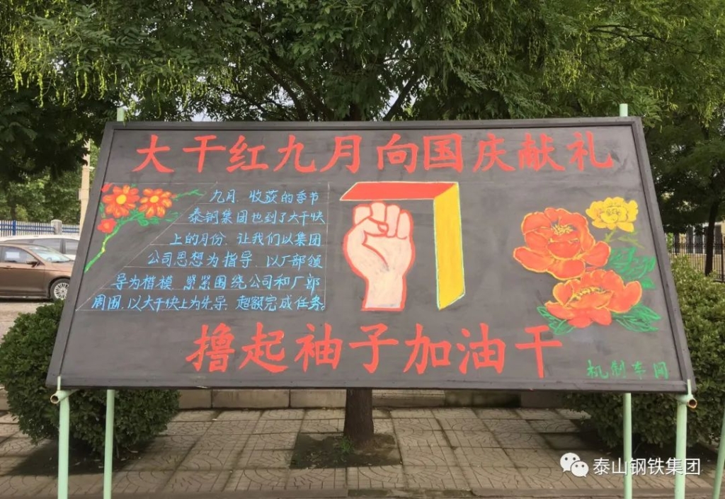 进入2020年,泰钢人紧密团结在泰山钢铁集团党委和董事局周围,团结一心战胜各种困难,一路高歌猛进,取得了优异成绩,呈现出你追我赶、争先恐后、大干快上、蒸蒸日上的好势头。进入九月份,为继续发扬大干红九月的光荣传统,继续保持上半年红红火火的发展势头,号召全体干部职工进一步昂扬斗志、热忱工作,比质量、比效益、比管理、比干劲,以优异的成绩向国庆71周年献礼。经泰山钢铁集团公司党委和董事局研究,决定在全公司开展“大干红九月 献礼71周年 决胜四季度”主题活动。流入泰钢“5月”的第一名天,各计量单位积极参与进行宣传广告计划,能够 挂在条幅、黑板报等方式,表达出大干红5月的坚硬信息和全力以赴。