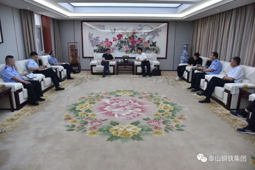 9月7日,济南市莱芜区委常委、政法委书记刘训涛带领公、检、法部门组成的“万警进万企”调研组来泰山钢铁集团调研,集团董事长、党委书记、总裁王永胜在办公楼贵宾室热情接待了刘训涛一行。