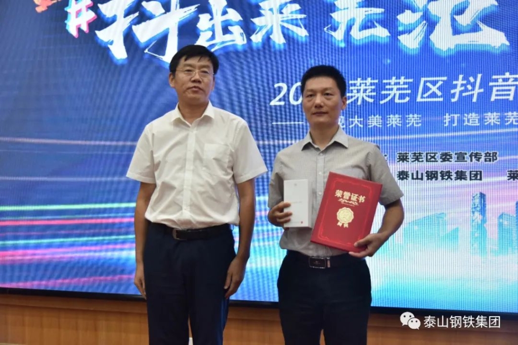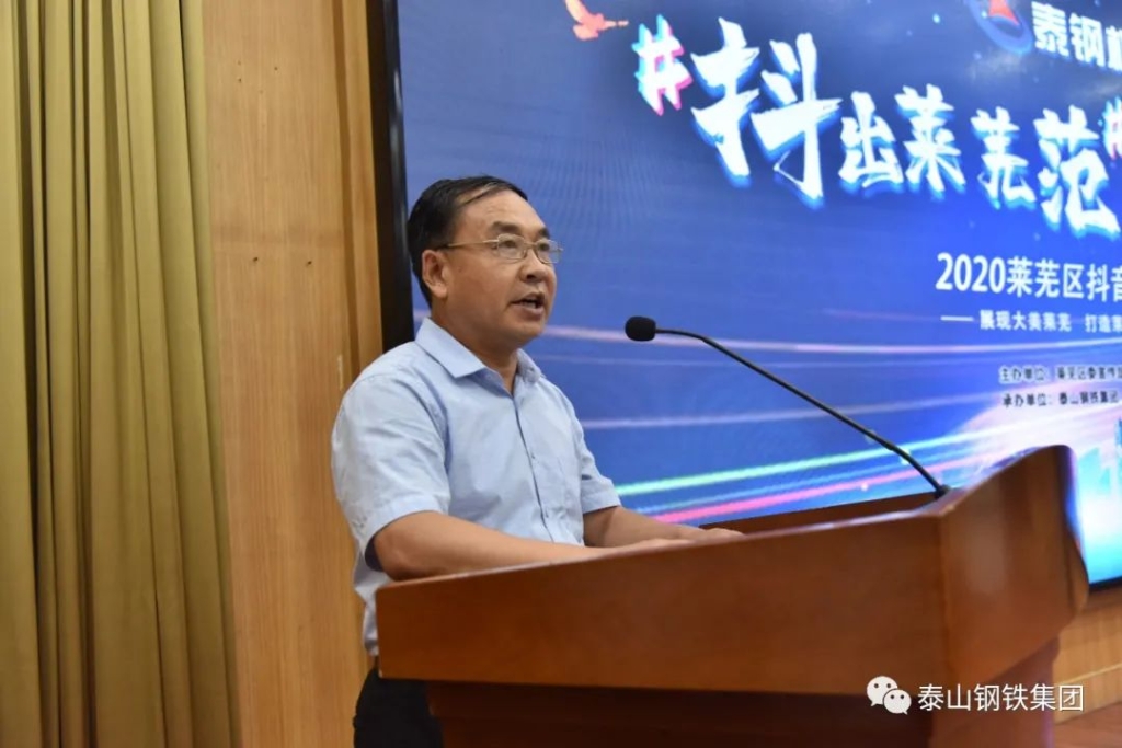 在热烈的掌声中,王董事长发表了热情洋溢的致辞。他说,区委宣传部联合莱芜在线和泰山钢铁,开展的“抖出莱芜范”活动正是抓住时代契机,创新宣传路径,提高群众参与热情,推动城市形象传播、扩大城市影响、打造莱芜新名片的一项重要举措。讲好地方故事、打造地方特色、树好地方形象,是地方发展的迫切需要,人民群众的迫切需要。在今后的工作中,泰山钢铁将一如既往的支持莱芜的城市文化宣传建设工作,也希望大家一如既往的关心和支持泰山钢铁的发展,关注实体经济,关注地方企业。