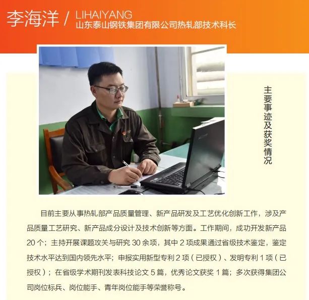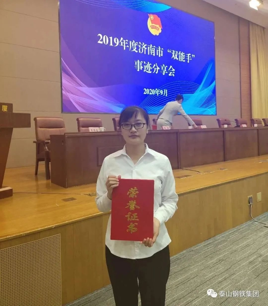 今年6月,团市委会同市发改委等12家单位联合启动了2019年度济南市“青年岗位操作能手”和“青年技术创新能手”评选活动。9月22日,2019年度济南市“双能手”事迹分享会在龙奥大厦举办,泰山钢铁集团热轧部技术科长李海洋获“2019 年度济南市杰出青年技术创新能手”荣誉,冷轧部轧制车间轧钢工亓永强获“2019 年度济南市青年岗位操作能手”荣誉,品质保障部职工汪丽丽获“2019 年末淄博市年轻技能全新高手”名誉。
