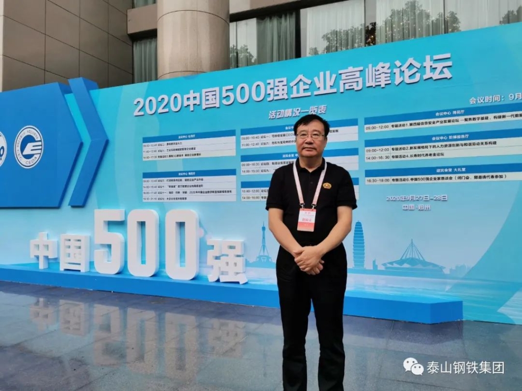 9月27日,由中国企业联合会、中国企业家协会主办的2020中国500强企业高峰论坛在河南郑州隆重举行,泰山钢铁集团董事长、党委书记、总裁王永胜受邀出席论坛。