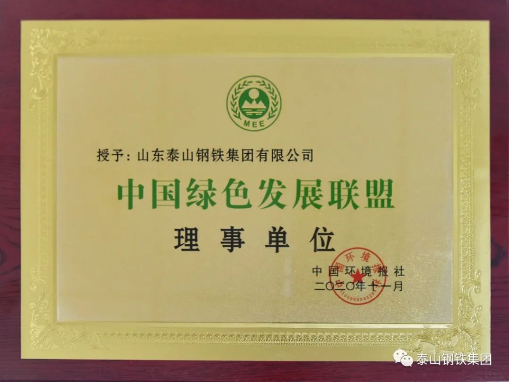 祝贺!泰山钢铁集团被授予“中国绿色发展联盟理事单位”