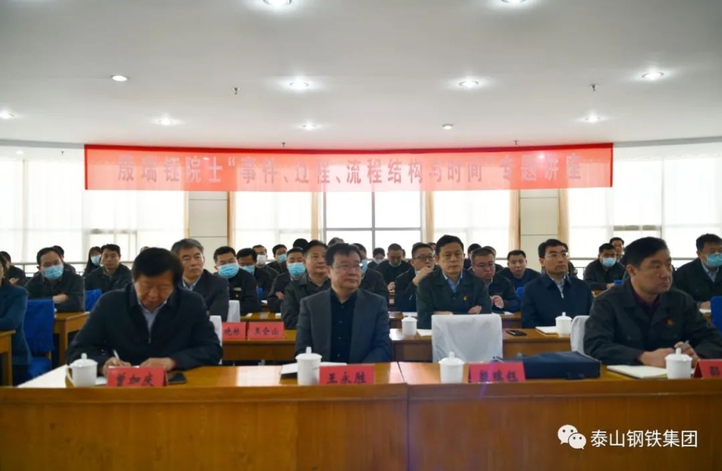 殷院士在这堂生动的冶金流程工程学课上为大家传授了先进的冶金理念、技术,让每位参会人员都受益匪浅。他还说,面对新形势下的新挑战,期待泰山钢铁能在双方的共同努力下,通过流程技术创新开发,构筑钢铁流程新优势,走出一条全新的洁净高效,可持续发展之路,把泰山钢铁建设成为节能型、环保型、智能型的绿色工厂典范。
