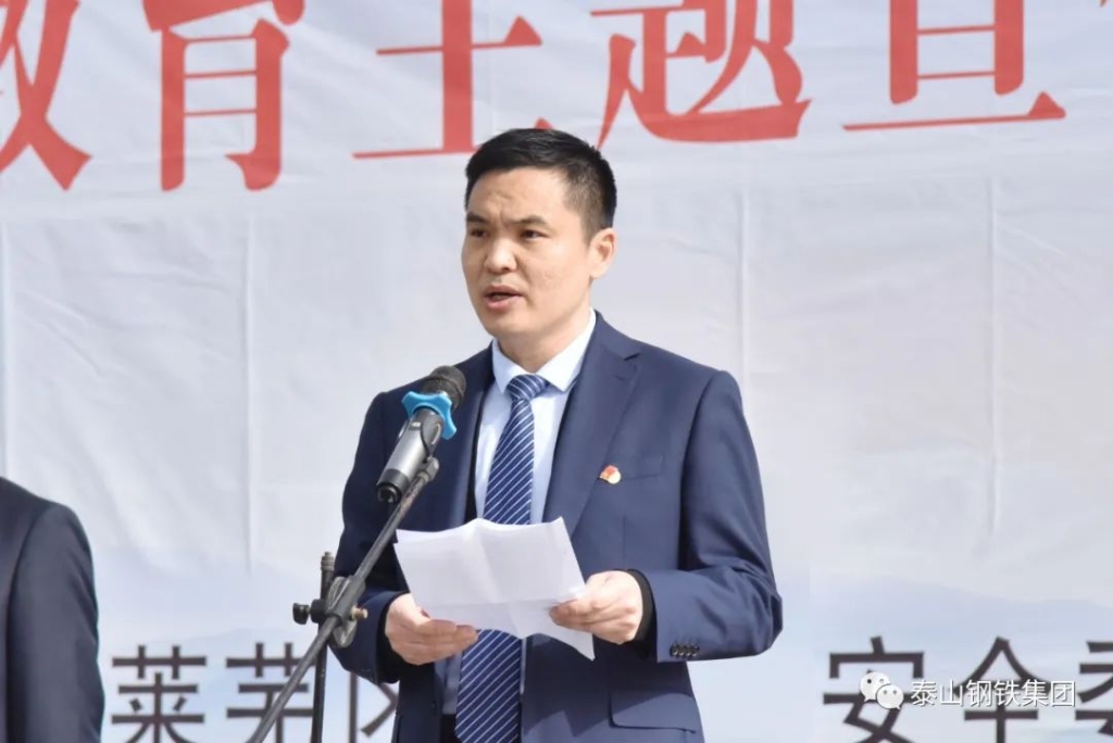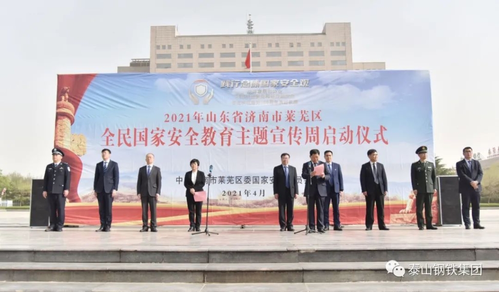 4月16日上午,莱芜区全民国家安全教育主题宣传周启动仪式在莱芜大厦楼前广场举行。莱芜区委书记、莱芜高新区党工委书记朱云生,莱芜区委副书记、区长秦蕾等区委区政府领导参加仪式,泰山钢铁集团董事长、党委书记、总裁王永胜作为企业代表作表态发言。