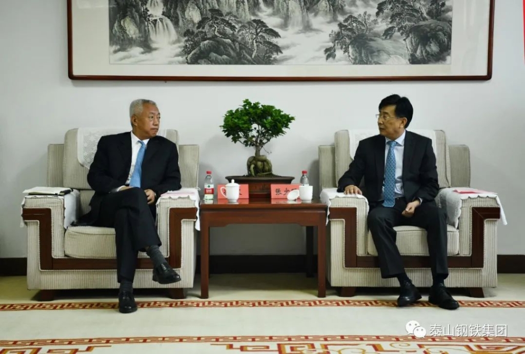 仪式前,凌文在泰山钢铁经贸楼贵宾室亲切接见了中国钢研科技集团有限公司党委书记、董事局长张少明,北京科技大学教授、中国工程院院士毛新平,了解中国钢研、北科大等单位与泰山钢铁集团在氢能技术攻关上的工作。他高度认可和肯定中国钢研和泰山钢铁通过开展战略合作促进核心技术研发,支持科研单位与泰山钢铁在高端装备用钢、氢能基地建设、工业互联网上开展更深入的合作,为山东高质量发展贡献力量。
