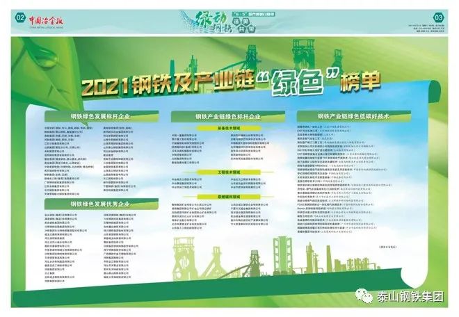 近日,由中国冶金报社组织的2021“寻找最美绿色钢城”评选结果揭晓。其中,泰山钢铁集团获评为“绿色发展标杆企业”。站稳精彩纷呈、低碳技术、绿色发展不断发展趋势历程