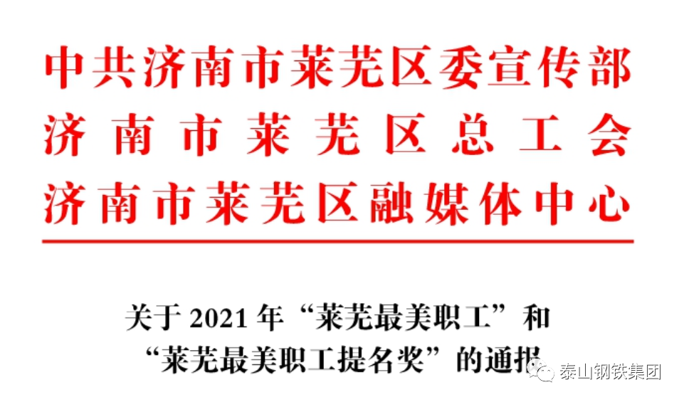 近日,中共济南市莱芜区委宣传部、济南市莱芜区总工会、济南市莱芜区融媒体中心联合发布《关于2021年“莱芜最美职工”和“莱芜最美职工提名奖”的通报》。其中,泰山钢铁集团热轧部李军辉荣获2021年“莱芜最美职工”荣誉。李军辉四十几个年甘愿职守在炼钢炉前二线,贵诚度中小型企业、立场坚定用心、不图名利、脚踏实地敢于担当,不懈研发专业的技术技术,敢于转型升级发展探讨实操内容,练好了炉火纯青的专业的技术运营技,积累更多了非常丰富的实操内容游戏经验。他引领用户 精诚团结,“金点子”科学合理化建立满天飞盛开,转型升级发展创效蔚然成风。2015年-9月以他的名排序的“李军辉转型升级发展任务室”获评为“各地冶炼相关行业最佳营业员转型升级发展任务室”。他干一列、爱一列、钻一列、精一列的精雕细琢最求,是集团官网二线营业员部门成长生长的最佳代表着。