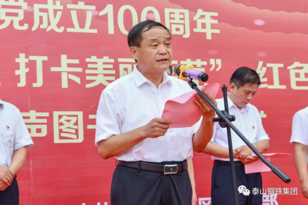 7月23日,庆祝中国共产党成立100周年全区统一战线“追寻红色足迹,打卡魅力莱芜”红色打卡活动暨泰山钢铁党建有声图书馆启动仪式在集团举行。莱芜区委统战部、宣传部等政府部门领导出席活动。作为承办单位之一,董事长、党委书记、总裁王永胜在会上致欢迎辞,为泰山钢铁党建有声图书馆揭幕。