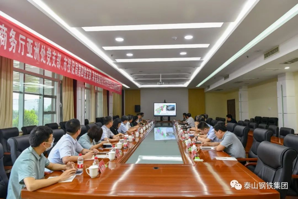 8月12日,省商务厅领导及亚洲处党支部、市投促局领导及第四党支部、莱芜高新区机关党委来泰山钢铁集团开展支部共建活动。省政府驻韩国经贸代表处首席代表贾继庆,市投促局副局长贺旭艳,莱芜高新区党工委副书记、管委会主任王喜东等领导出席活动。群体党支部副组织部长、工会组织领袖杜跃进满腔热情招待了省区市区一把手们。甲乙双方在对外经济贸易楼进行了座谈会互动交流。