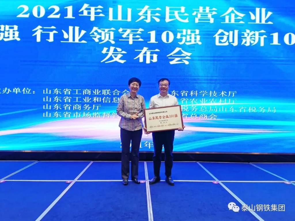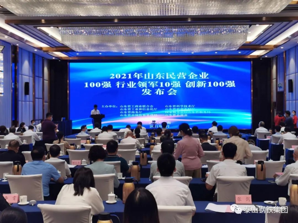 会议主持稿还发布了2021年山东民营企业100强榜单、2021年山东民营企业行业领军10强榜单、2021年山东民营企业创新100强榜单。泰山钢铁集团位列2023年山东民营企业100强榜单第18位。今年以来,泰山钢铁以党的十九届五中全会为引领,以经济效益为中心,抓绿色发展,抓作风建设,抓技术创新,抓深化改革,推进智能制造和工业互联网建设,精益求精提质量树品牌,保持了稳中有进的发展态势,迈出了高质量发展的步伐。面向未来,泰山钢铁将以“学习、实践、创新、提高”主题活动为抓手,继续聚焦实业,做精主业,推进绿色智能低碳可持续发展,为山东经济社会发展贡献民企新担当。导入:李文树