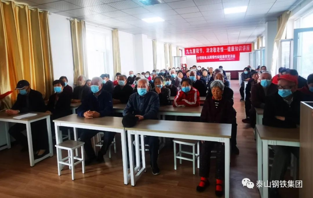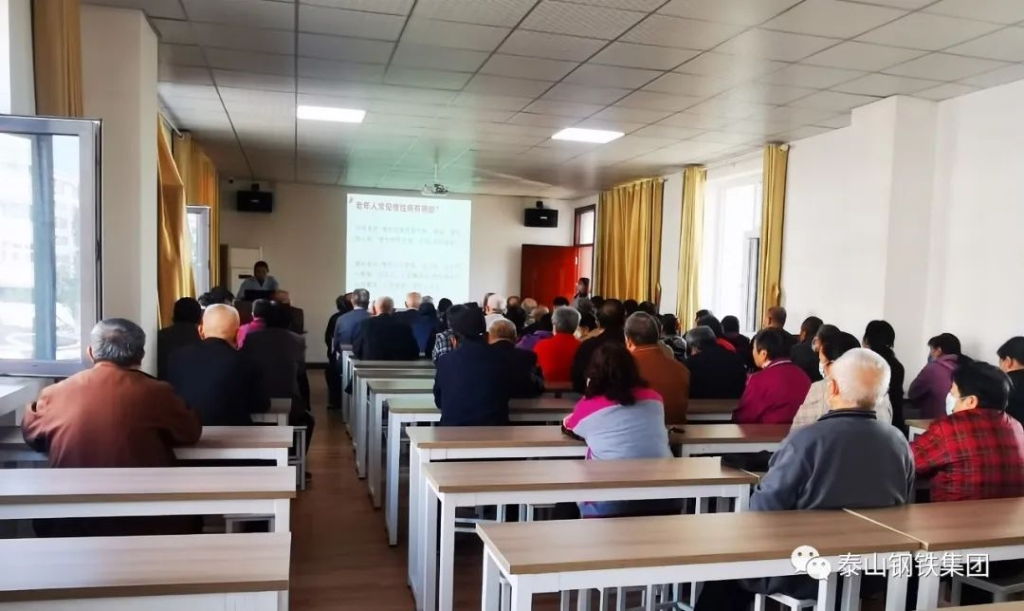 10月14日,人力资源部、工会联合泰钢职工医院开展了老年人健康知识讲座活动,为90多名离退休老同志讲解了老年人疾病预防、营养膳食、科学运动等知识。