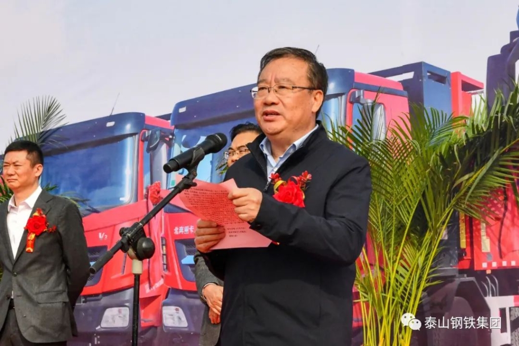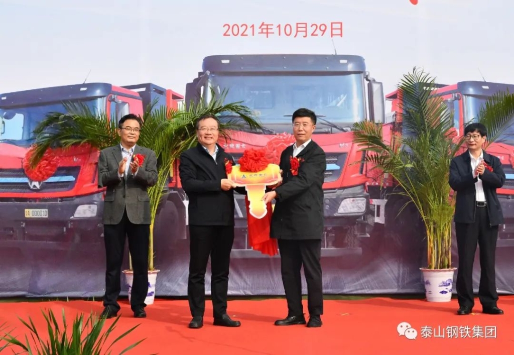 泰山钢铁集团举行清洁运输暨百台电动重卡投运仪式