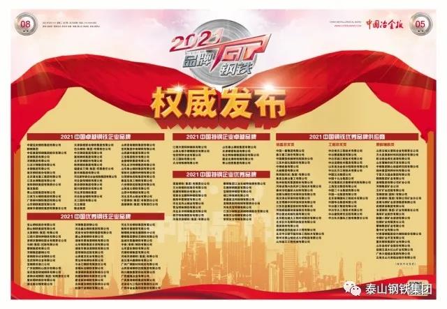 集团党委书记、董事长、总裁王永胜荣获“2020山东省循环经济十大年度人物”称号1月25日,备受关注的2020山东省循环经济年度盛典在山东电视台800演播大厅举行。集团董事长、党委书记、总裁王永胜荣获“2020山东省循环经济十大年度人物”称号,并出席本次盛典。“山东省循环经济年度人物”是经过社会推荐、专家论证等程序,从全省各行业中遴选出的突出企业、个人。这项荣誉的获得也是省委省政府对泰山钢铁集团坚定不移落实党和国家要求、探索循环经济发展之路,实现了企业经济效益、环境效益和社会效益和谐统一的高度认可。集团召开“学习、实践、创新、提高”主题活动动员大会4月30日,泰山钢铁集团在中心会堂召开“学习、实践、创新、提高”主题活动动员大会,集团党委书记、董事长、总裁王永胜在会上发表讲话。本次会议,是在世界面临百年未有之大变局,钢铁行业进入新阶段,我们泰钢面临新挑战的特殊形势下召开的一次十分重要的会议,目的是动员和激发全体干部职工把学业务、学技能当作岗位成才的主要通道,把争先进、争模范当成事业成功的重要标志,从而顺利实现职工职业素养和企业发展质量的双提升,为建设“五个新泰钢”提供强劲动力,为打造“千亿级不锈钢集群”积蓄澎湃力量!5月9日,值我国第五个中国品牌日之际,新华社、中国品牌建设促进会、中国资产评估协会、国务院国资委热博rb88体育等单位在上海国际会议中心举行“2021中国品牌价值评价信息发布暨中国品牌建设高峰论坛”。在发布的“2021中国品牌价值评价信息”中,泰山钢铁集团以品牌价值39.93亿元,强度809,位列冶金有色组第十三位。