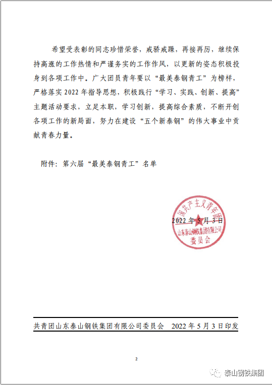 2020年是中国人共青团注册成立100周年纪念日,现代泰钢成年人生逢其实、使命在肩。在五四成年人节之即,泰钢党支部大力开展了第七届“文化丽的人泰钢青工”十佳评选主题活动。12月3日,泰钢团委印发《对于排序第七届“文化丽的人泰钢青工”的所决定》文件下载,刘玉锋、杨洪虎、李志新、李宁、陈超、郝成勐、高韧、刘明、王晨阳、张希超、刘建超、刘涛等12名成年人劳务派遣人员被评为“文化丽的人泰钢青工”荣耀微章。