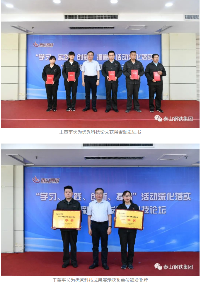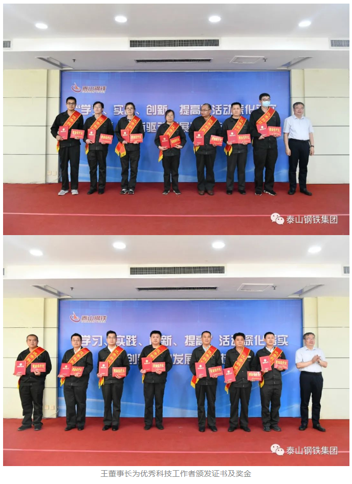 “衣着朴素、言语朴实、工作扎实。”“虽然大家身处不同岗位,从事不同的工作,但都对科技工作始终满腔热忱、精益求精、奋斗不止。”“正是因为有一大批优秀科技人才,开拓进取、兢兢业业,泰山钢铁的高质量发展才获得了源源不断的动力支撑。”王董事长用三句话语道出了科技工作者在集团发展建设中做出的突出贡献和展现的宝贵品质,激励广大干部职工围绕效益提升,紧盯“世界一流、国内领先、创新引领”总目标,为建设“五个新泰钢”献力献智。