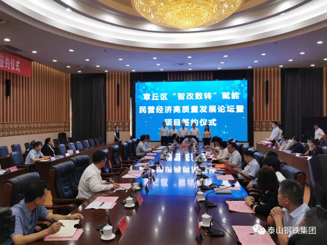 王董事长在会上介绍了集团通过智改数转赋能实现钢铁产业转型升级的做法。他说,“智改数转”是制造业转型发展的必然趋势,也是动能转换的重要引擎。近年来,泰山钢铁着力实施智能化改造,通过区块链、互联网、大数据、机器人等新技术与生产制造的深度融合,加快智能物流、智能仓储、工业机器人、无人料场等智能制造项目落地,对生产现场现有装备进行全面优化,使装备从自动化向智能化的转变,初步实现了信息化与工业化融合,正迈向“智改数转”加速发展快车道。当前,数字化转型已成为新一轮产业发展的制高点,大势所趋。泰山钢铁将继续走好具有泰钢特色的“智改数转”之路,建设全球最具竞争力400系不锈钢产业集群。