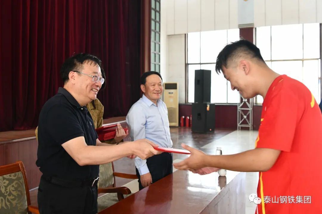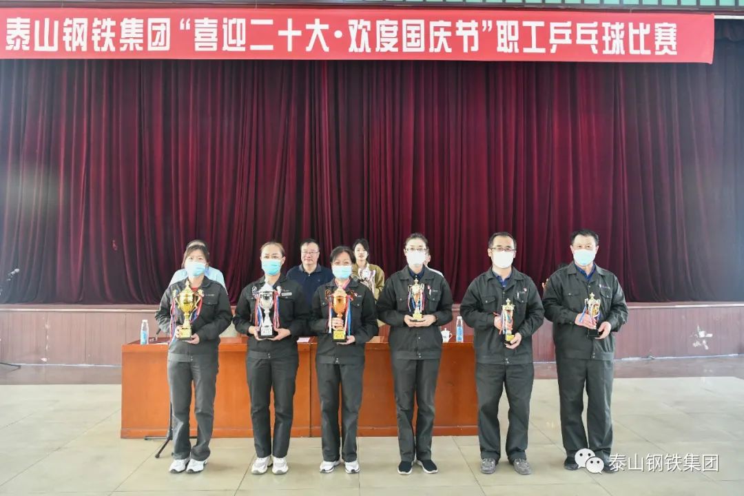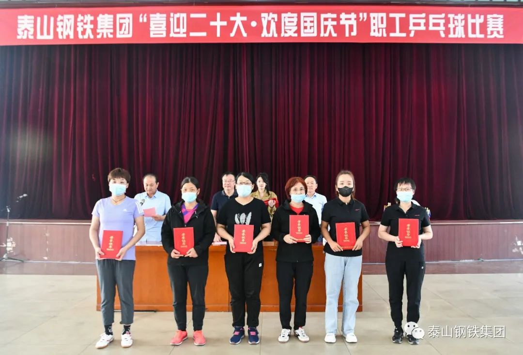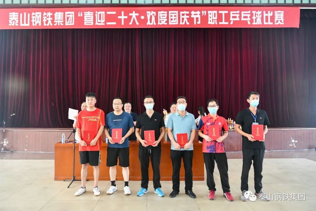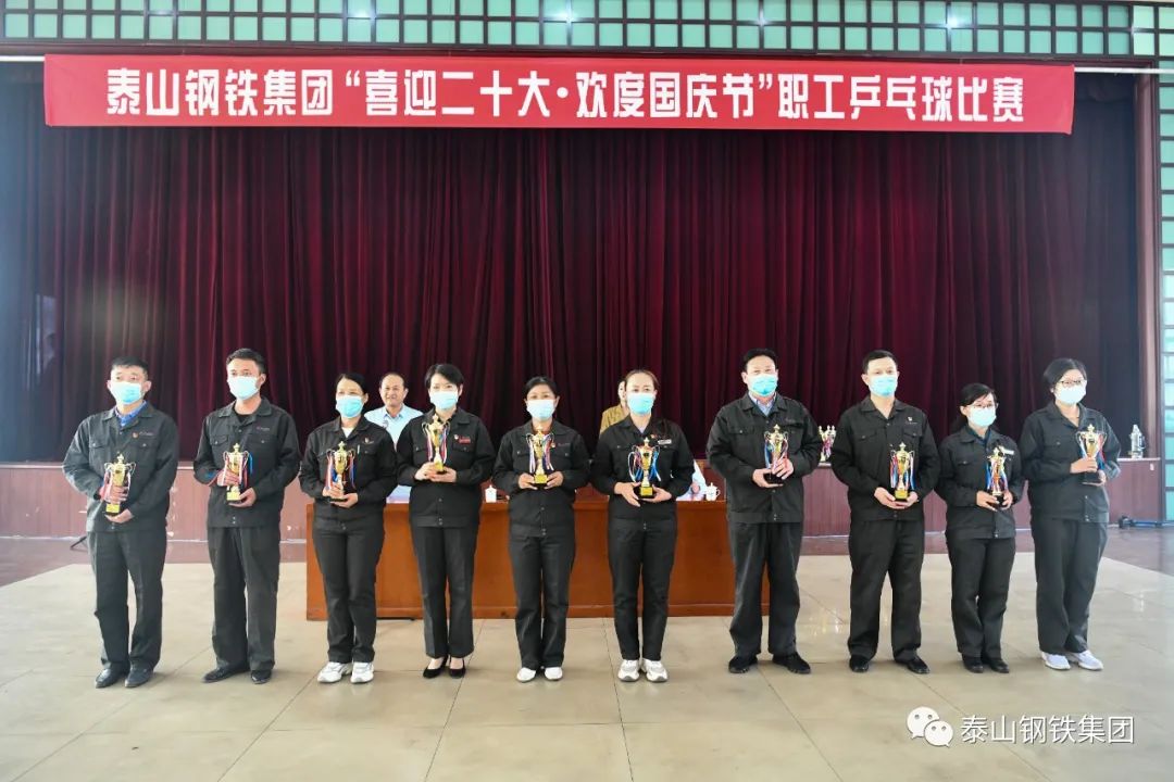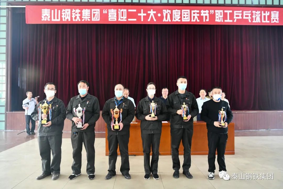 9月28日下午,泰山钢铁集团“喜迎二十大·欢度国庆节”职工乒乓球比赛决赛在中心会堂举行。集团董事长、党委书记王永胜出席闭幕式,为获奖选手颁奖,并发表了热情洋溢的讲话。集团党委副书记、工会主席杜跃进参加活动。