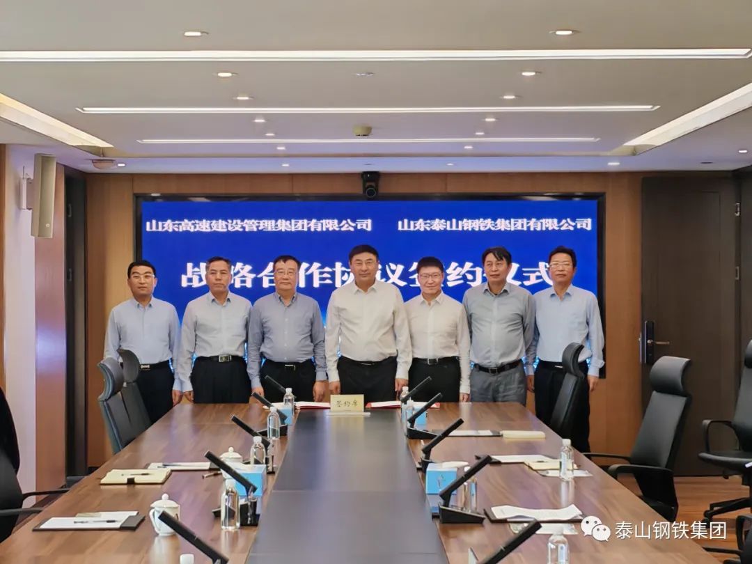 10月15日,泰山钢铁集团与山东高速建设管理集团有限公司签署战略合作协议。山东高速建设管理集团有限公司党委书记、董事长徐庆军,集团党委书记、董事长王永胜等领导出席仪式。山东高速建设管理集团有限公司党委副书记、工会主席张庆涛主持仪式。