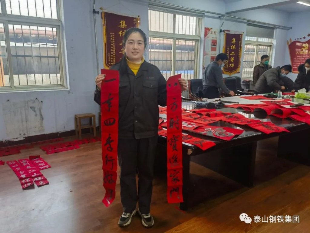 生活车间,翰墨香满园。泰钢文联字画针灸学会的教师们申请潜心,泼墨成宝,悄然把对春节的好的愿望清花费在笔尖上,一副幅对仗美观、意喻福运的春联,一整张张苍劲强大强大、满是喜气的大红大绿“福”字,让舌尖上的年味更浓,春声更暖。