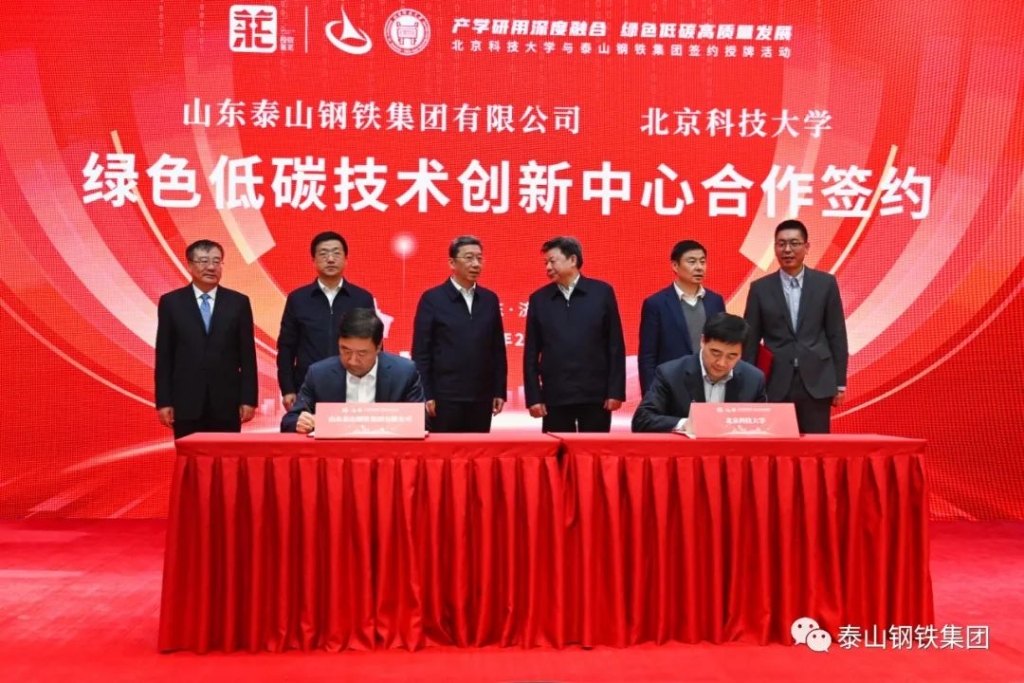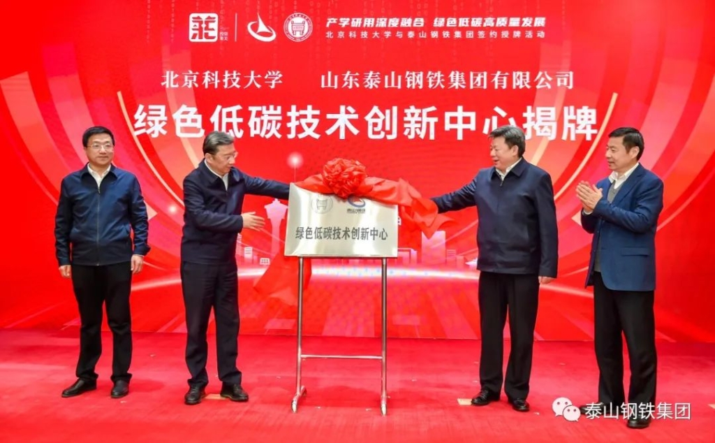 2月6日,北京科技大学和泰山钢铁集团在莱芜宾馆隆重举行联合共建“绿色低碳技术创新中心”签约暨揭牌仪式。北京科技大学校长杨仁树,中国工程院院士、北京科技大学碳中和创新研究院院长毛新平,济南市委常委、副市长孙斌,莱芜区委副书记、区长李光辉,泰山钢铁集团董事长、党委书记王永胜等领导出席会议。莱芜区委常委、副区长付华主持仪式。