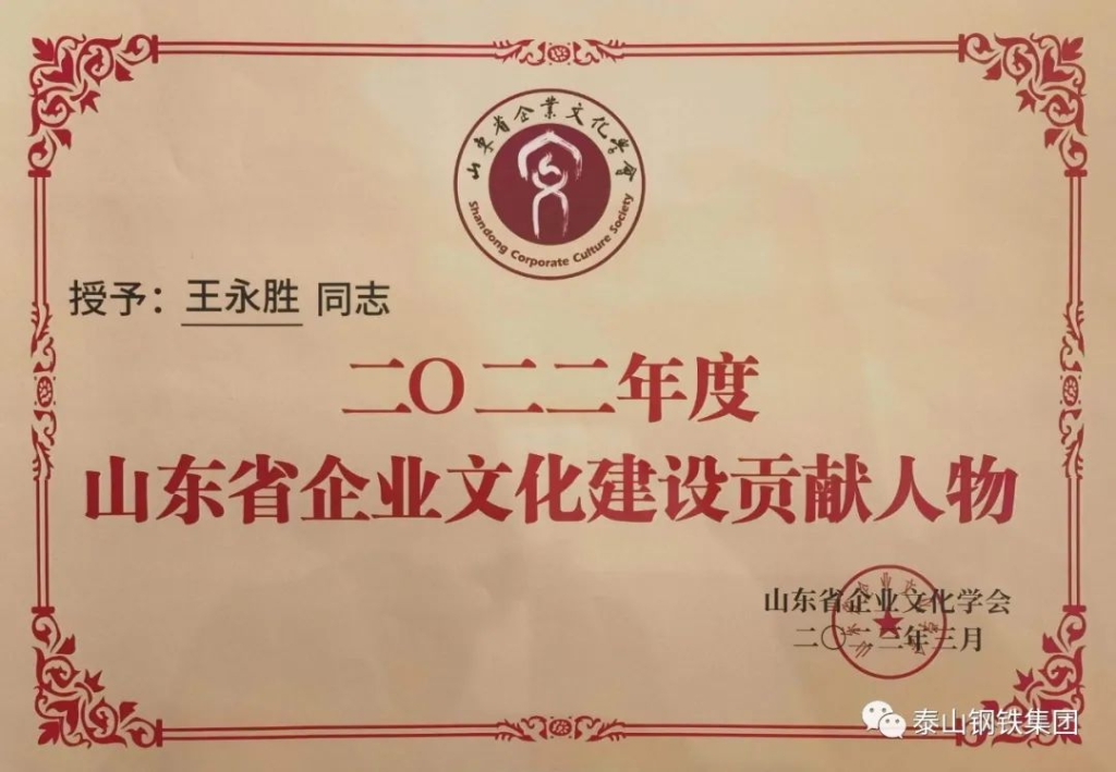 3月26日,山东省热博rb88体育建设发展大会在临沂召开。会上表彰了2022年度山东省热博rb88体育建设先进单位和个人。其中,泰山钢铁集团被授予“2022年度山东省热博rb88体育建设先进单位”荣誉称号,集团党委书记、董事长王永胜获得“2022年度山东省热博rb88体育建设贡献人物”荣誉称号。