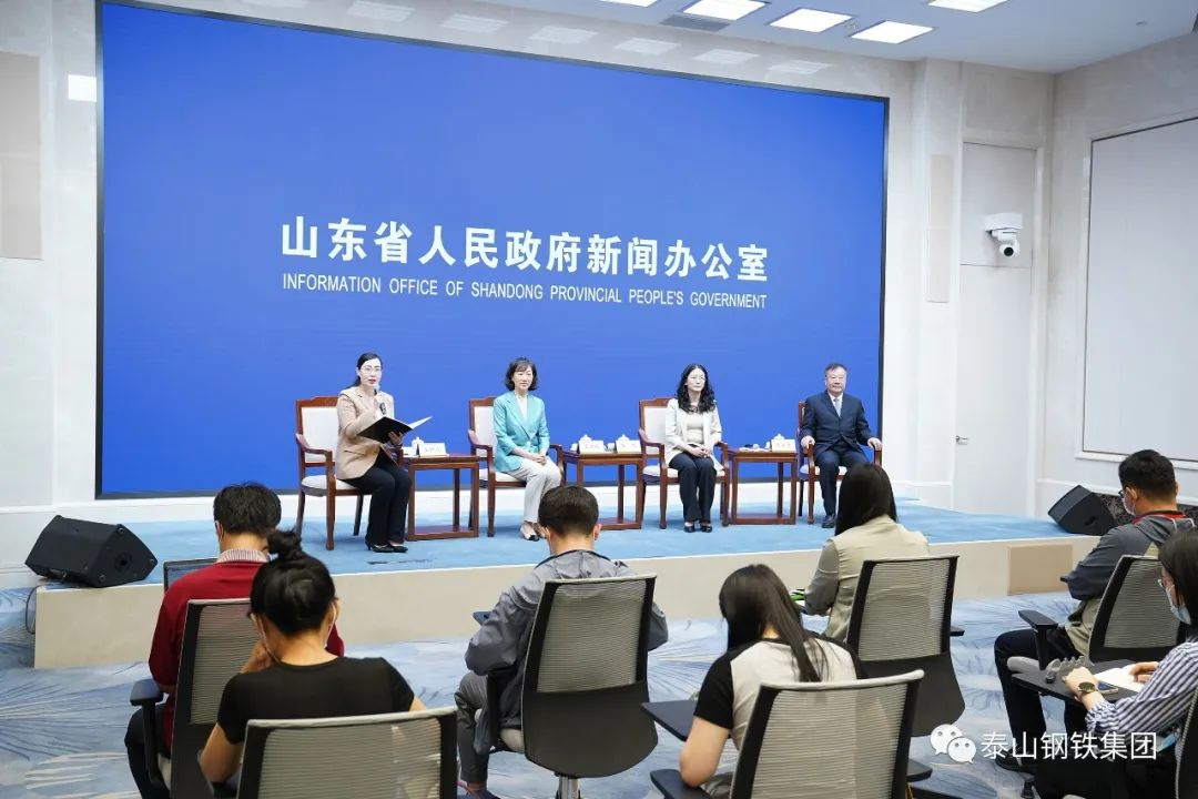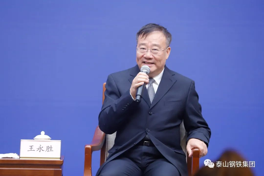 为贯彻落实党的二十大精神和习近平总书记关于民营经济发展的重要论述,按照山东省民营经济高质量发展工作会议部署要求,紧密结合学习贯彻习近平新时代中国特色社会主义思想主题教育,山东省人民政府新闻办公室举办“推动民营经济高质量发展”系列新闻发布活动,宣传解读我省推进民营经济高质量发展的政策举措。6月6日,山东省政府新闻办在济南举行首场民营企业家记者见面会,邀请了3位全省制造业重点产业链“链主”企业代表,围绕“发挥链主引领作用 推动产业链高质量发展”主题,与人民网、新华社、央广网等十多家国内主流媒体进行了面对面交流。泰山钢铁集团董事长、党委书记王永胜作为钢铁产业链“链主”企业代表受邀参加活动。