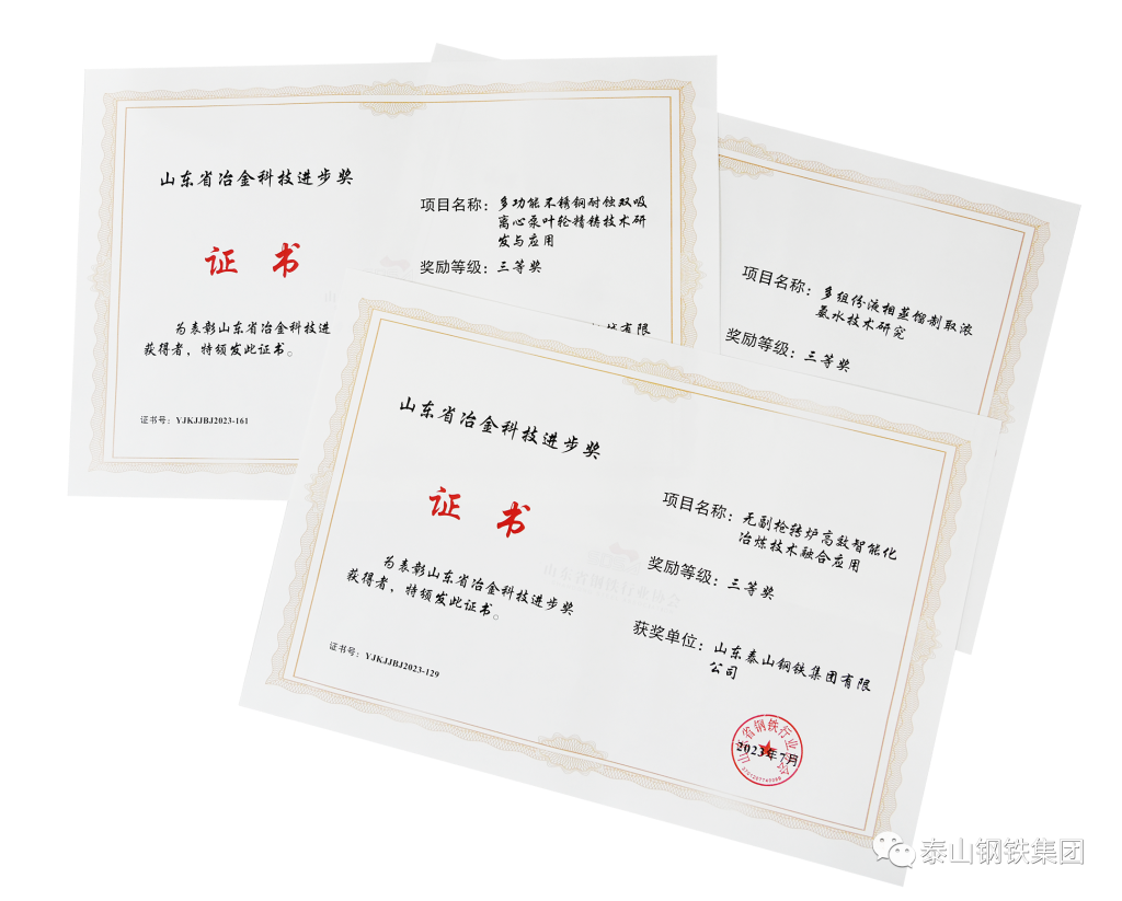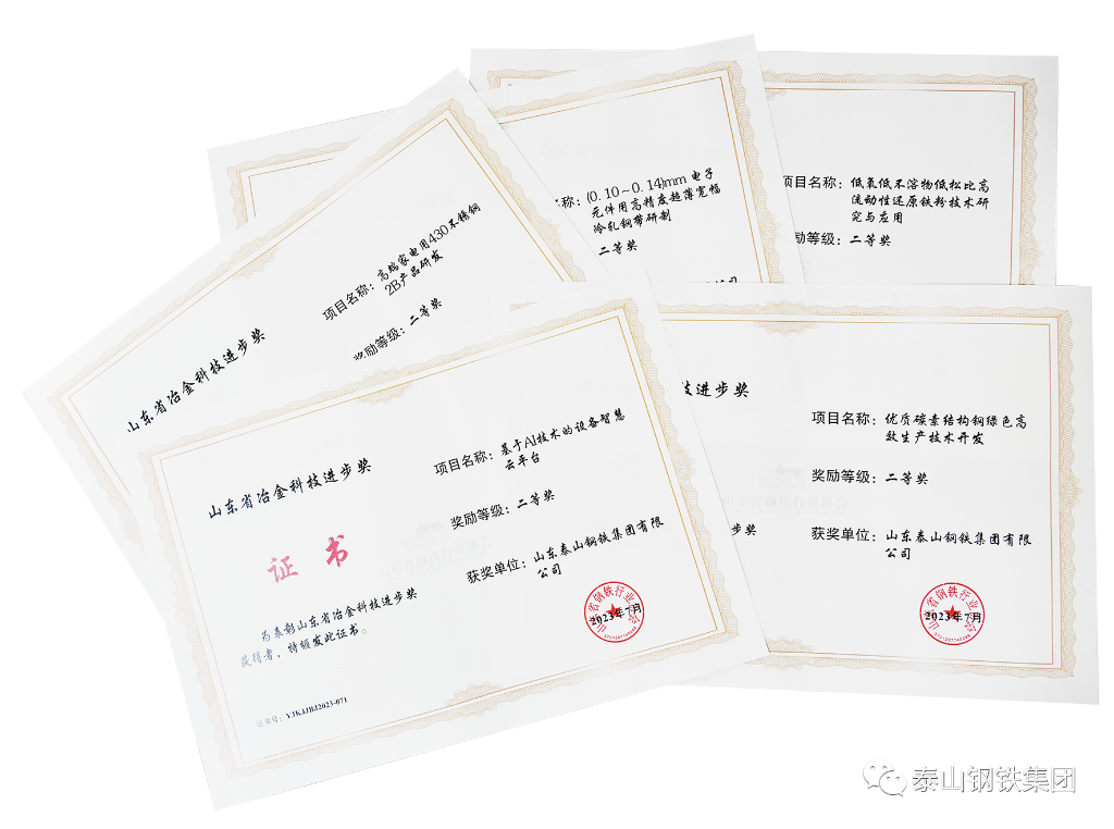 近日,山东省钢铁行业协会颁发“2023年度山东省冶金科技进步奖”证书,泰山钢铁集团十项科技创新成果获奖。其中,“来源于大的数据具体分析的罗马信息化炼铁控制系统设计与应用软件”、“商品质含氮马氏体装饰管带理论理论研究开发建设”评为头等奖;“高端品牌家具家电用430装饰管2B新产品理论理论研究开发建设”、“(0.10~0.14)mm 电子器材电气元件用高导致精度薄款宽幅冷扎钢表带生产研发”、“好炭素组成钢绿色健康高效益化产量技艺开发建设”、“低氧低不溶物低松变高变化性替换铁粉技艺理论理论研究与使用”和“对于AI技艺的主设备谋略云服务平台网站”获2等奖;“无副枪转炉高效益化智力化冶炼技艺融入使用”、“多功效装饰管耐蚀双吸离心分离泵扇叶精铸技艺理论理论研究开发建设与使用”、“两组份高效液相萃取制取浓氨水技艺理论理论研究”获二等奖。