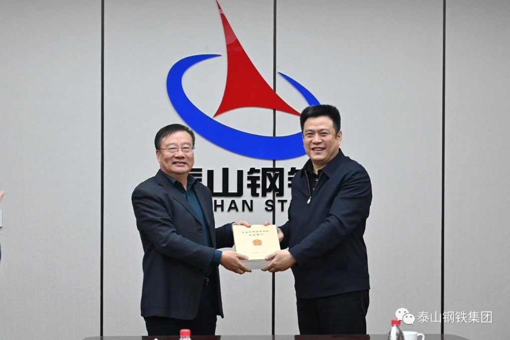 11月9日,莱芜区人民法院党组书记、院长胡世涛带队来到泰山钢铁集团,代表山东省高级人民法院向全国人大代表,集团董事长、党委书记王永胜征求意见和建议。在集团办公楼贵宾室,王董事长与胡世涛一行进行了座谈。