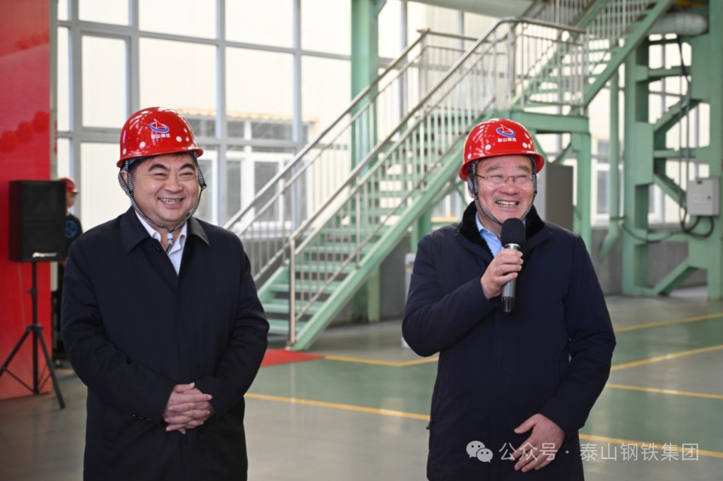 1月28日,齐鲁财金投资集团有限公司党委书记、董事长吕慎宾带队到泰山钢铁集团参观。集团董事长、党委书记王永胜热情接待吕慎宾一行,陪同参观了泰嘉不锈钢冷轧板材深加工项目现场、泰钢精神主题展览馆和老书记纪念馆。