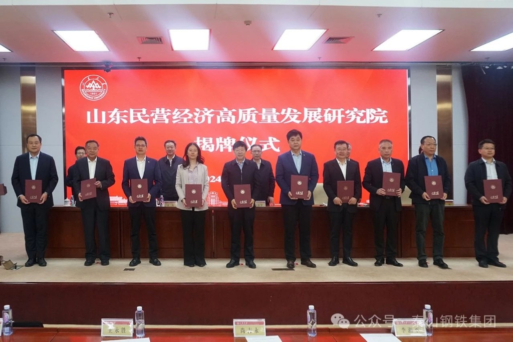 4月16日,山东民营经济高质量发展研究院在山东大学举行揭牌仪式。省委常委、统战部部长徐海荣,山东大学党委书记任友群致辞,并为山东民营经济高质量发展研究院揭牌。泰山钢铁集团董事长、党委书记王永胜当选为山东民营经济高质量发展研究院首届理事。