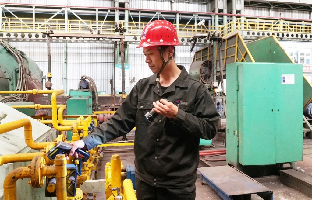 谢国锋是泰山钢铁集团不锈钢轧钢厂的一名维修工,每天一早,他都会准时出现在轧线上,拿着手电筒、带着听诊棒,仔细检查轧线设备的运转情况。