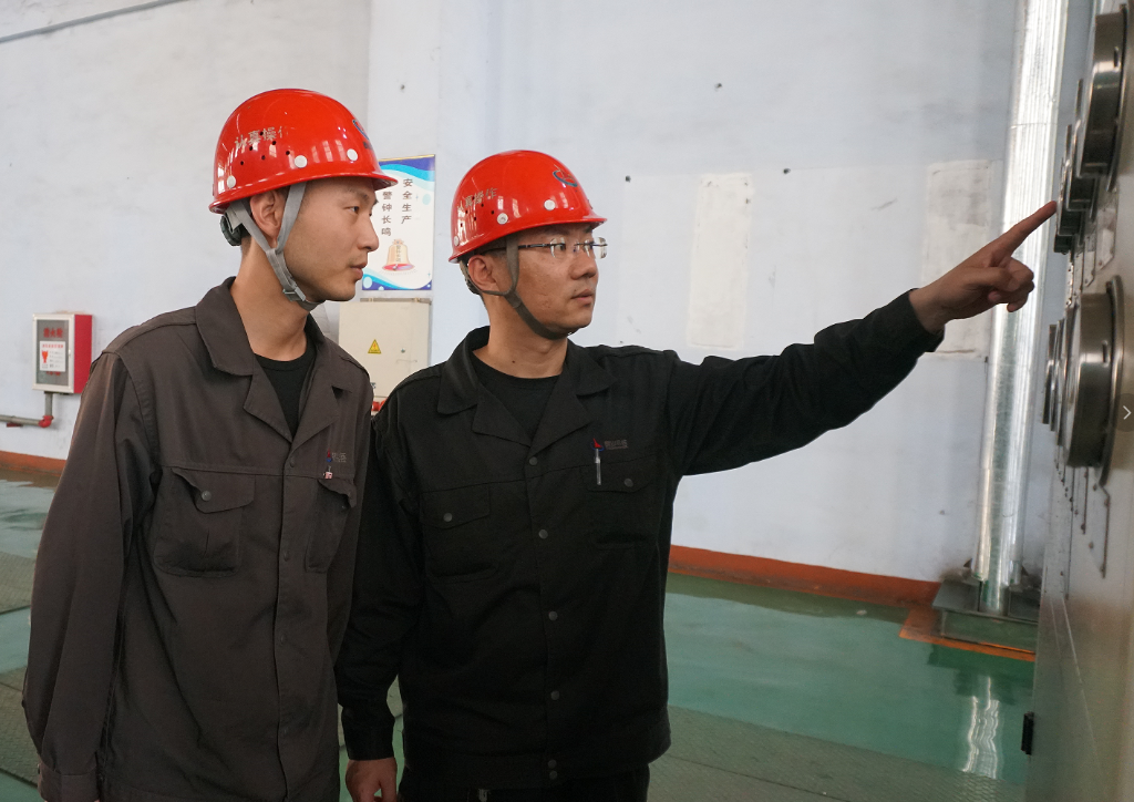 当记者走进泰山钢铁集团热电公司发电车间65MW汽机运行班,热浪裹挟着机器轰鸣声扑面而来。眼前的几名班员正手持测温枪与听诊棒,全神贯注地检查设备运行情况,丝毫不受高温和噪音的影响。