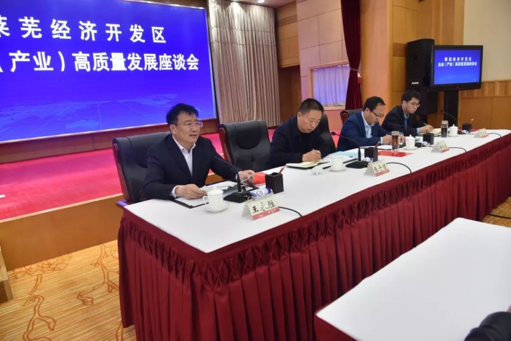 3月22日,莱芜经济开发区企业高质量发展座谈会在莱芜宾馆召开。莱芜经济开发区党工委书记张子信主持会议并宣读表彰决定,莱芜经济开发区党工委主任李长春介绍了当前经济形势,泰山钢铁集团董事长、党委书记、总裁王永胜出席会议并发表讲话。