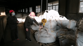 (借助集装柜运到的兰炭在新建材来进行装卸货物)