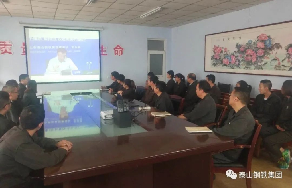 王董事长从坚持党的领导不动摇、咬定发展不放松、全心全意依靠职工办企业、与时俱进抓学习、坚守本分干实业五个方面谈了泰山钢铁集团的经验做法。