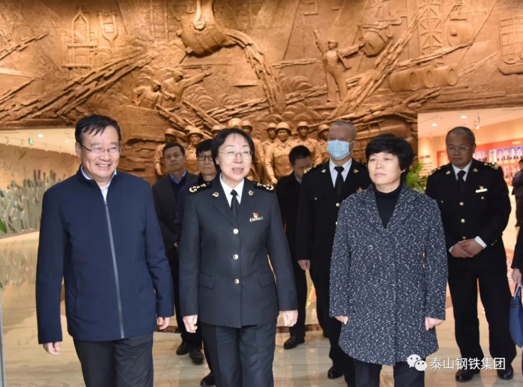12月2日,济南海关关长、党委书记赵儒霞一行在莱芜区委副书记、区长秦蕾陪同下来泰山钢铁集团调研,集团董事长、党委书记、总裁王永胜陪同海关领导们参观了泰钢精神主题展览馆、泰嘉不锈钢冷轧板材深加工项目冷退线,介绍了集团发展历程、未来规划等情况。